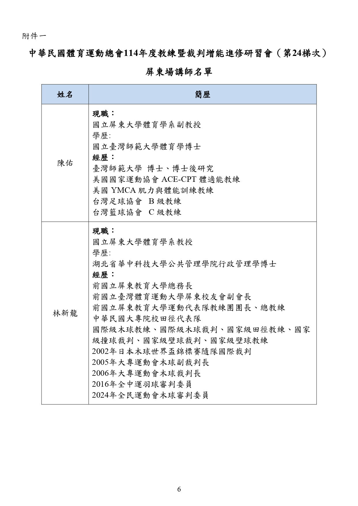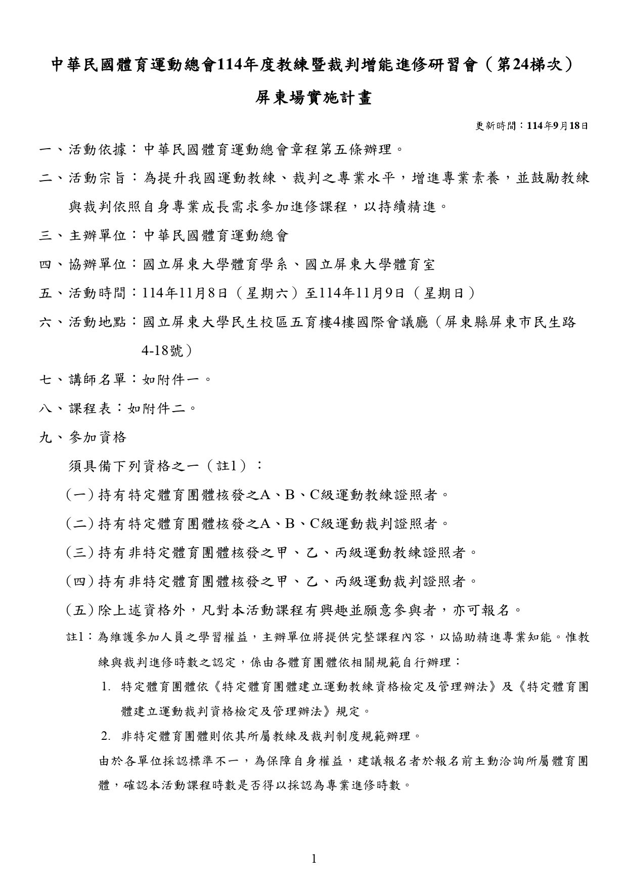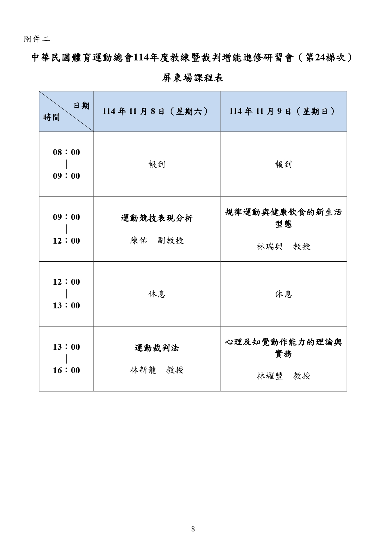 公告消息 轉公告-114年教練暨裁判增能進修研習會(第24梯次)屏東場 By - 2025/09/24 173 0 SHARE Facebook Twitter 相關檔案 # 檔案下載 檔案名稱 1 體總輔字第1140002605號-附件一.pdf