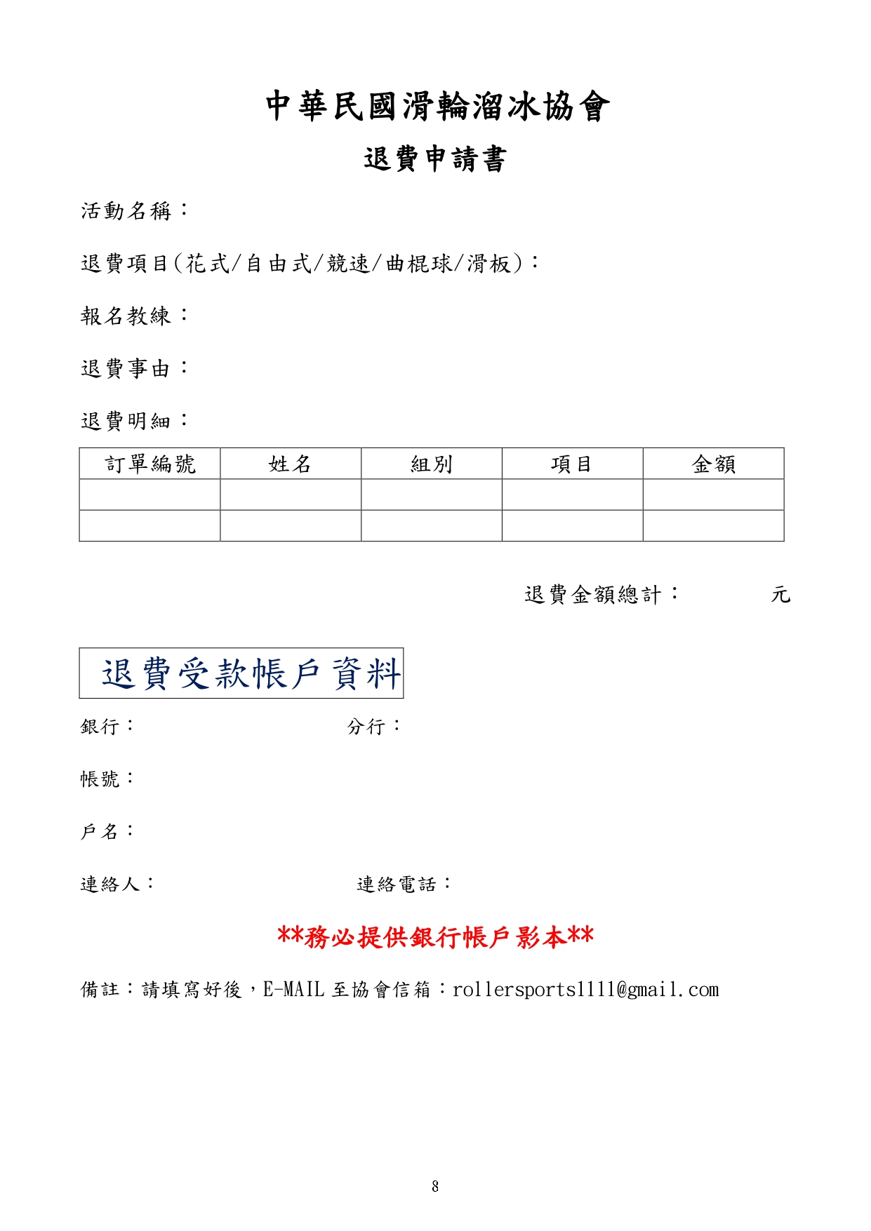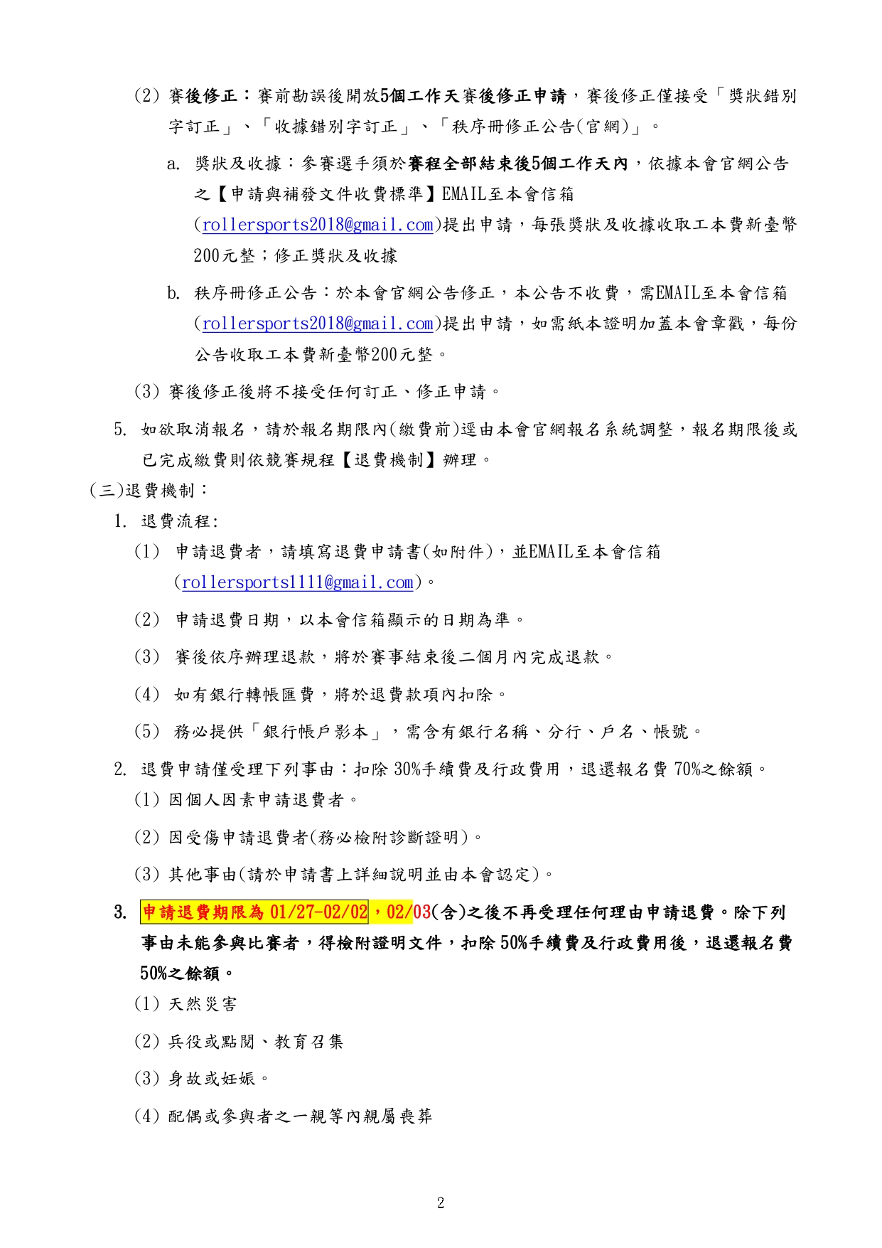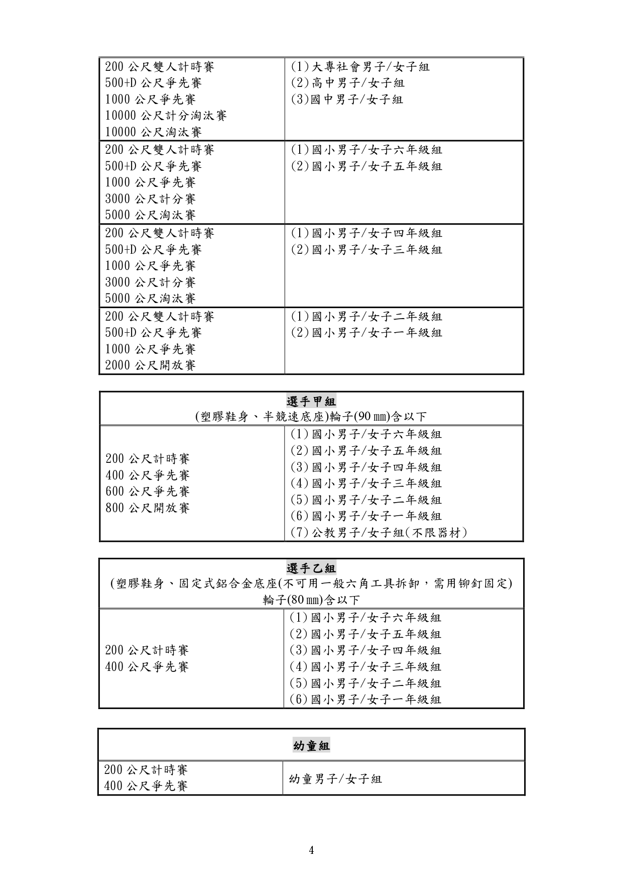 最新 項目 公告消息 競速溜冰 113年第21屆總統盃全國溜冰錦標賽(競速溜冰)委員組報名從這裡! By - 2024/01/08 5819 0 SHARE Facebook Twitter 報名時間: 2024/01/15 ~ 2024/01/30 報名去 委員組報名截止日期為113年1月30日 17:00止 (1月16日更新) 相關檔案 # 檔案下載 檔案名稱 1 113年第21屆總統盃-競速秩序冊-網路公告版.pdf 2 臺教體署競(二)字第1130002693號.pdf 3 發-各縣市溜委會.pdf 4 發-各縣市教育局.pdf 5 113年第21屆總統盃全國溜冰錦標賽暨2025競速溜冰國手積分賽競賽規程(競速溜冰).pdf 6 退費申請書(賽事、研習).docx