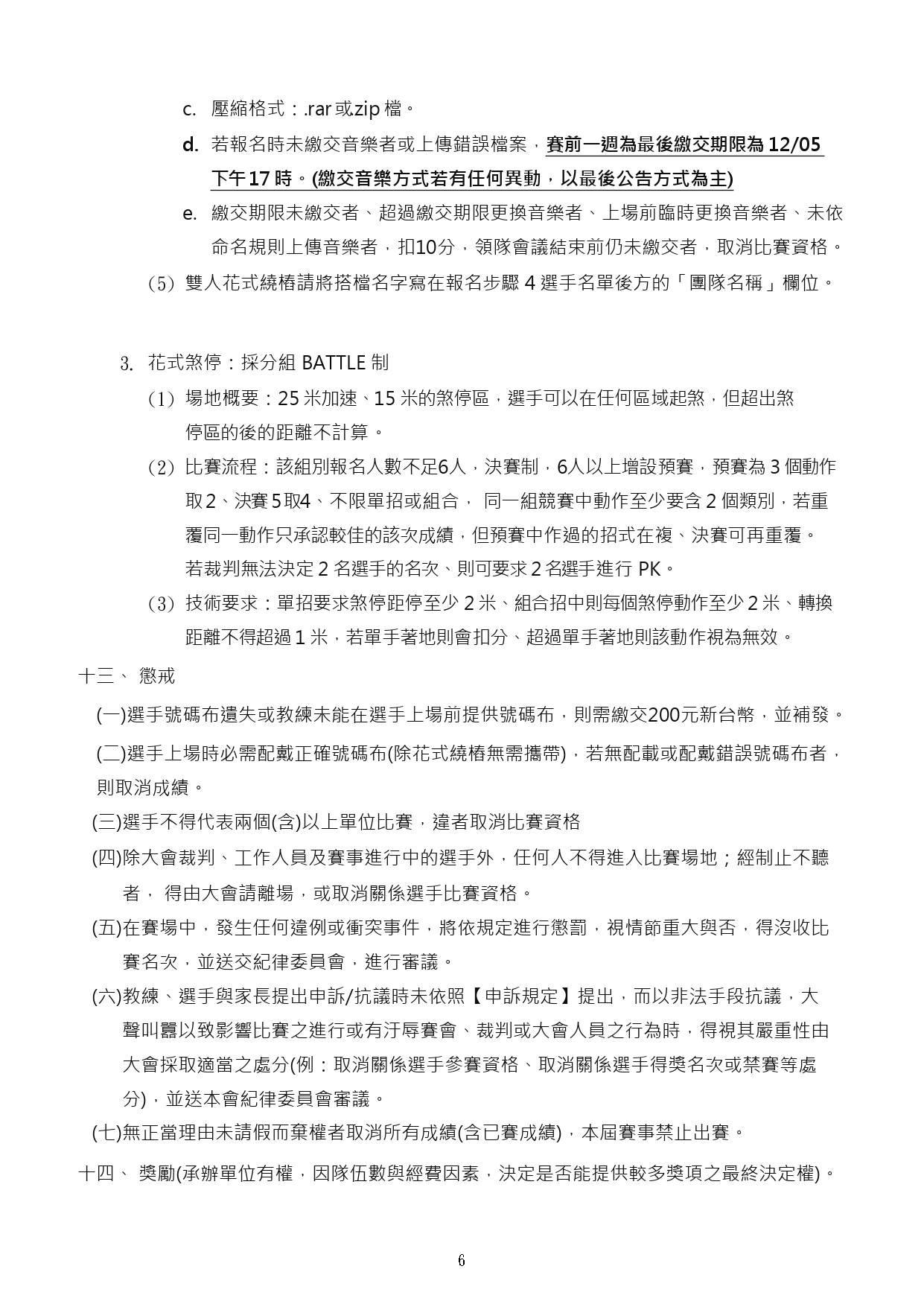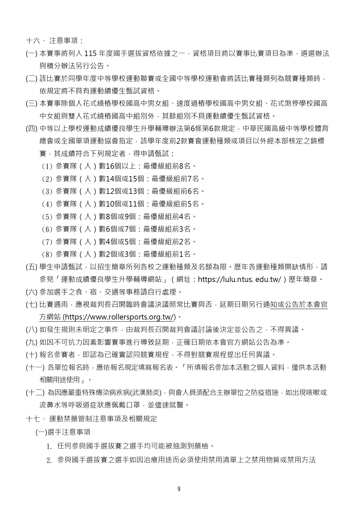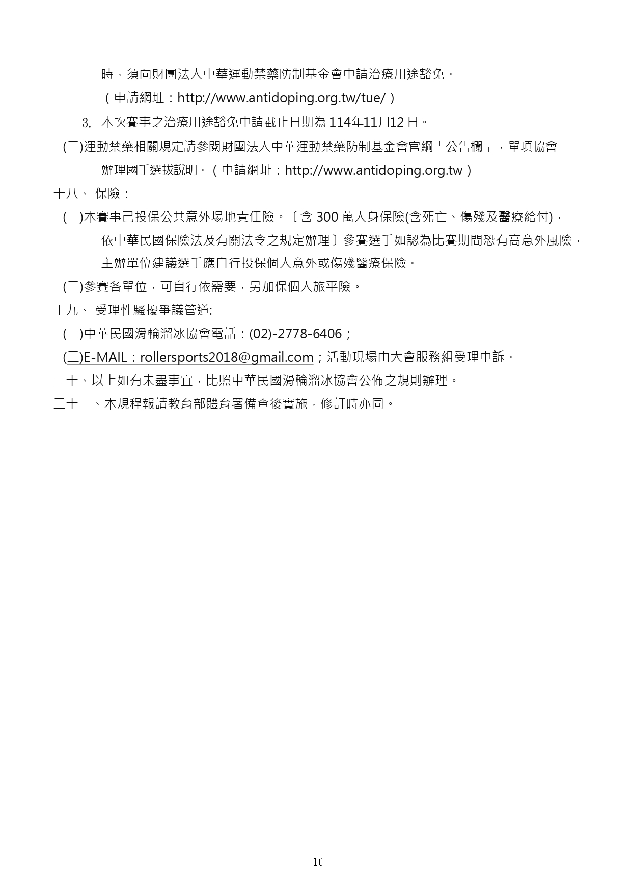 最新 項目 自由式輪滑 公告消息 114學年度第47屆中正盃全國溜冰錦標賽(自由式輪滑)(學校組報名從這裡!)-草案 By - 2025/09/18 1845 0 SHARE Facebook Twitter 報名時間: 2025/09/22 ~ 2025/10/03 報名去 相關檔案 # 檔案下載 檔案名稱 1 退費申請書(賽事、研習).docx
